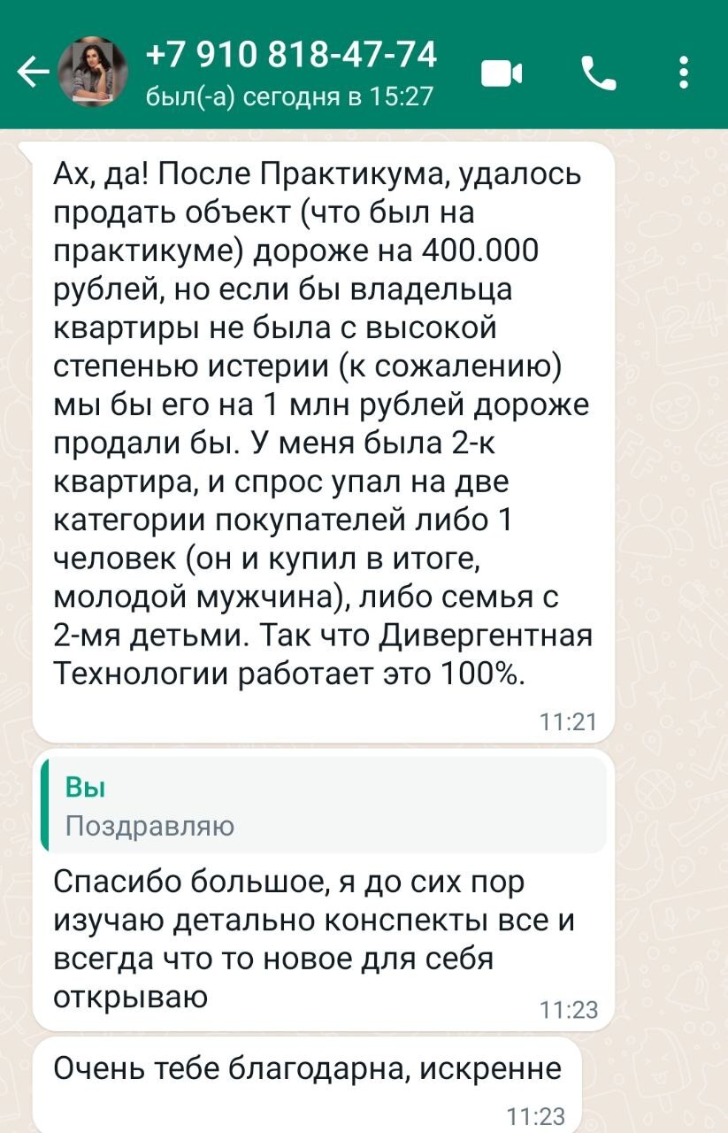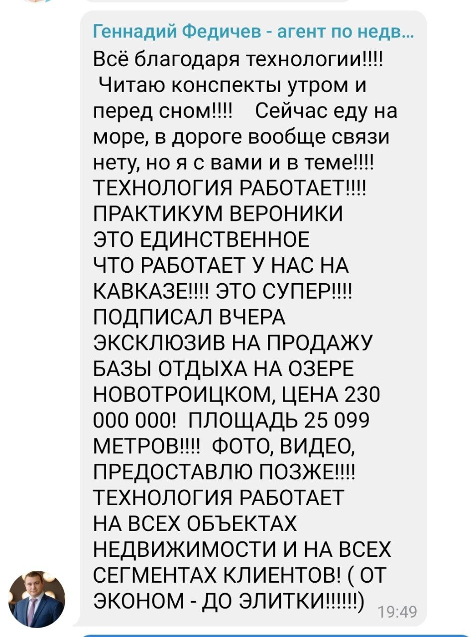 Вероника дает новое понимание жизни и работы Риэлтора, а главное – понимать клиентов рынка недвижимости и строить отношения между собой.
